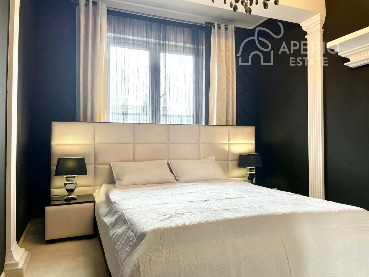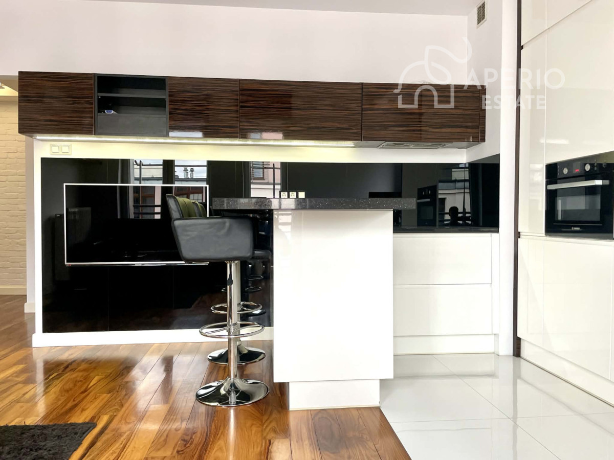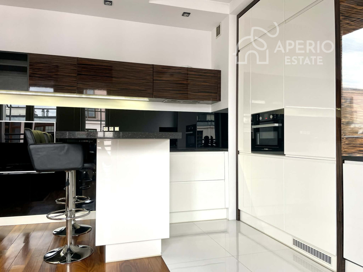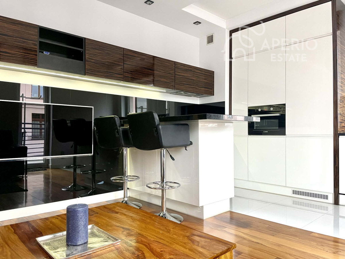 Wykończone przy użyciu wysokiej jakości materiałów: podłoga w drewna egzotycznego, blaty kamienne. Dodatkowo zainstalowana klimatyzacja oraz rolety.