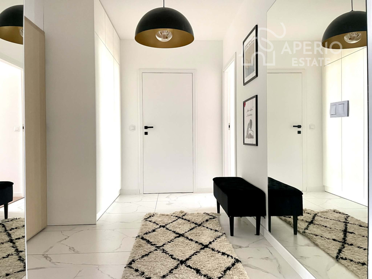 Dwie duże szafy w zabudowie (w hallu i salonie) sprawiają, że z łatwością pomieści się wszystkie ubrania.