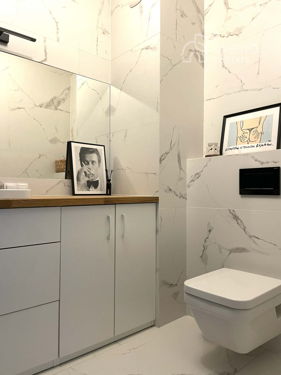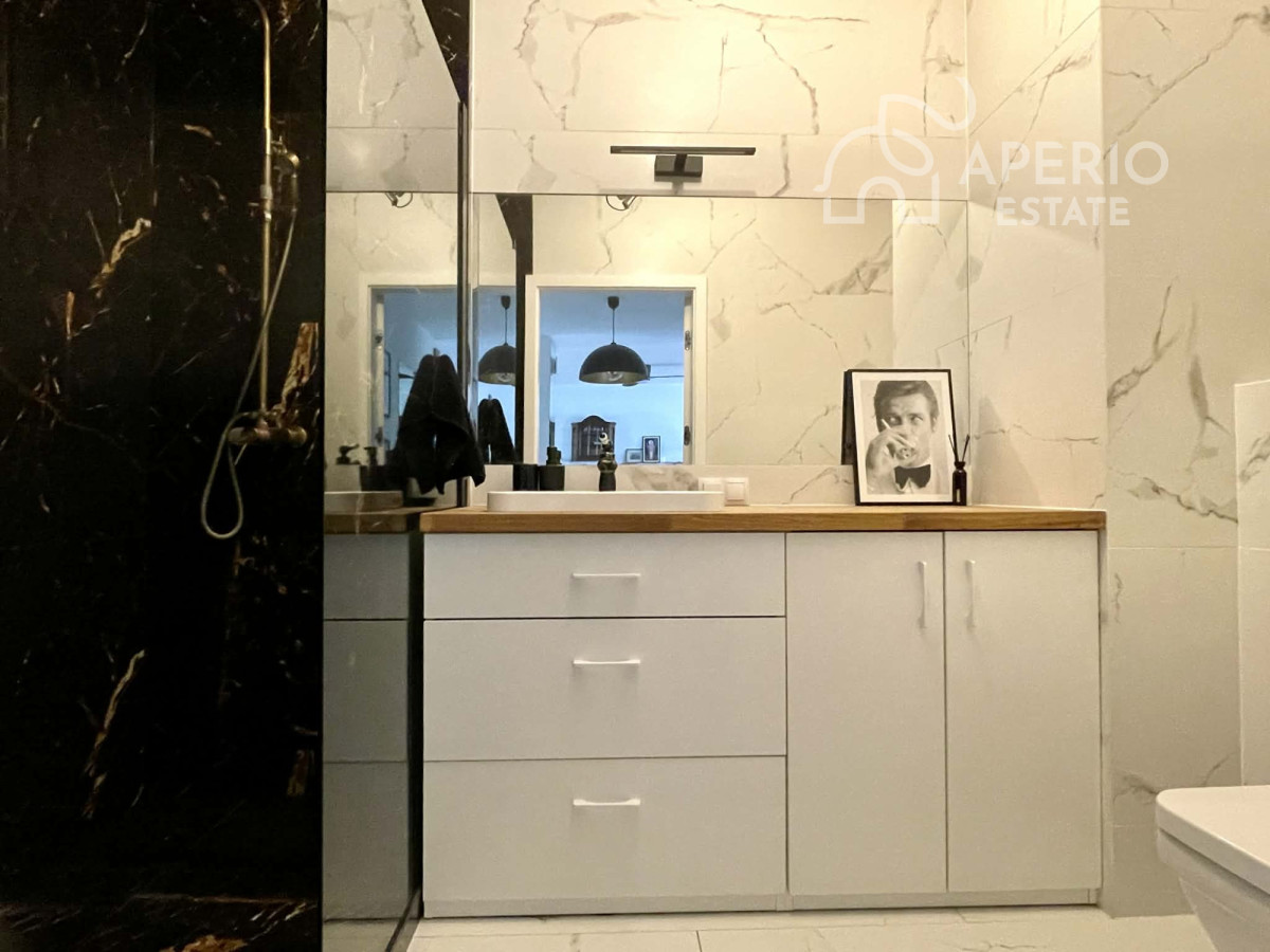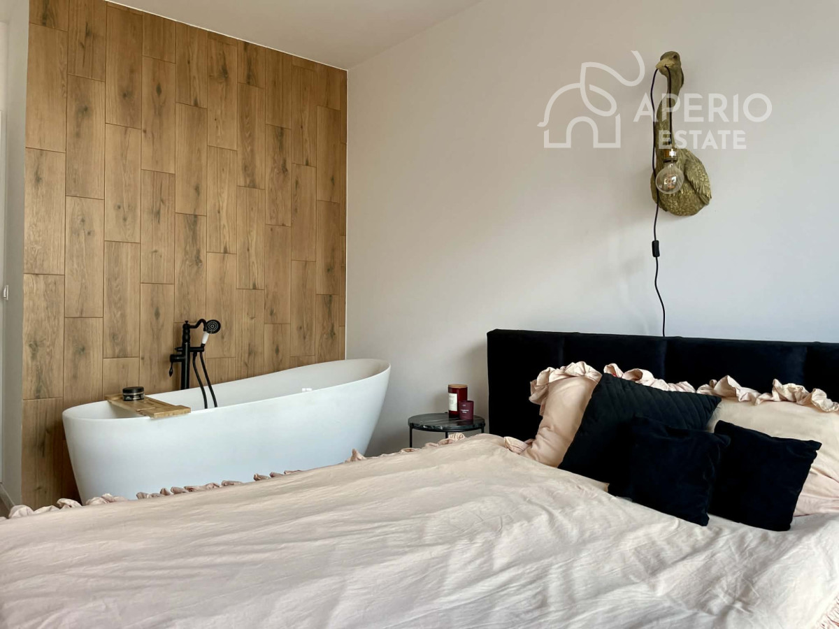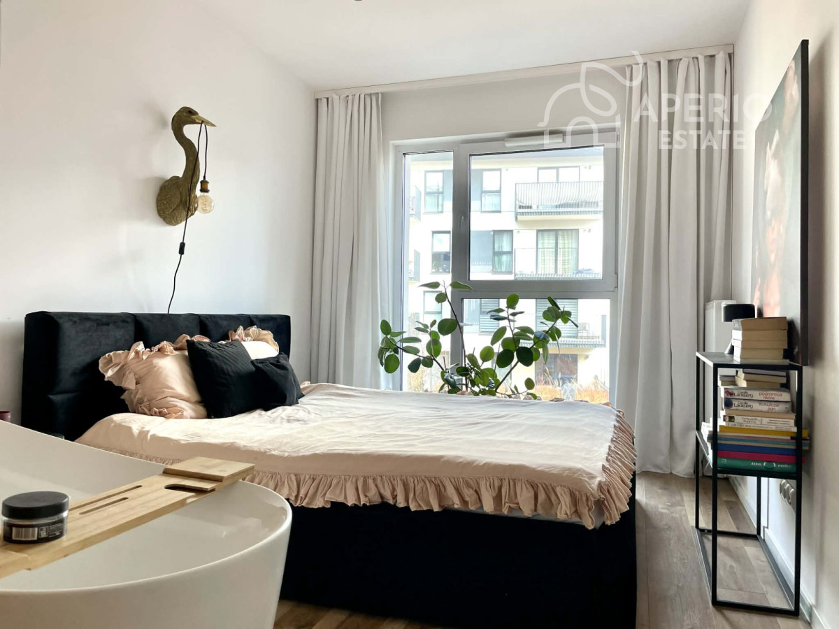 Lokal wyróżnia się przemyślanym układem - przestronny salon z aneksem kuchennym, oddzielna sypialnia z wanną oraz łazienka zapewniają komfort codziennego życia.
